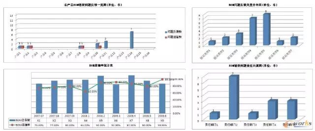 考核方式:此阶段BOM数据已经传输至下游部门及生产系统,此阶段的错误数据对管理成本影响较大;BOM准确率应保持99%以上。检查手段同上,BOM管理小组编制BOM运行定期统计报表。并将BOM数据错误明确到产品、部门、责任人,反馈给绩效管理部门,绩效管理部门以QCD标准扣除责任部门的当月绩效当量;